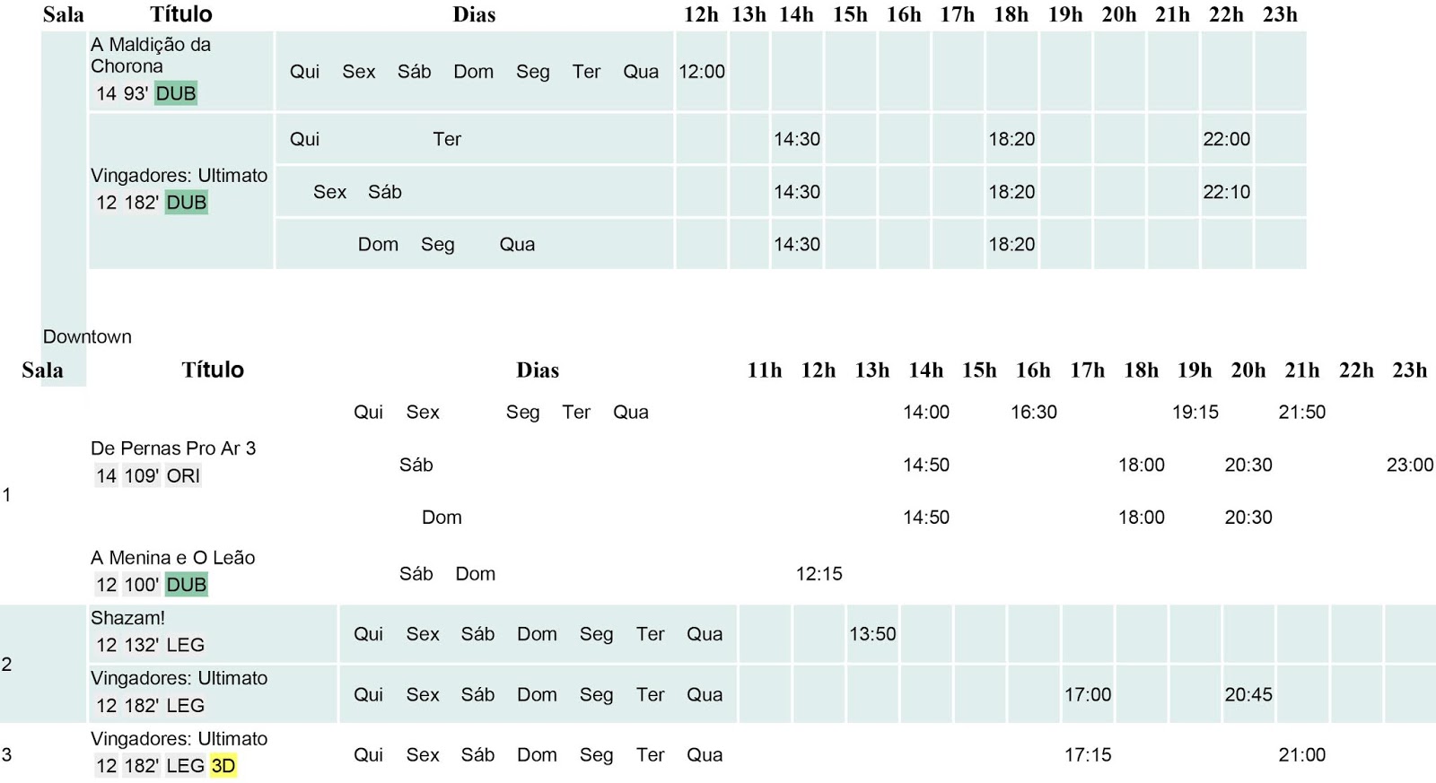 | Abaixo segue a grade horária de programação - 25/04/2019 a 01/05/2019 |